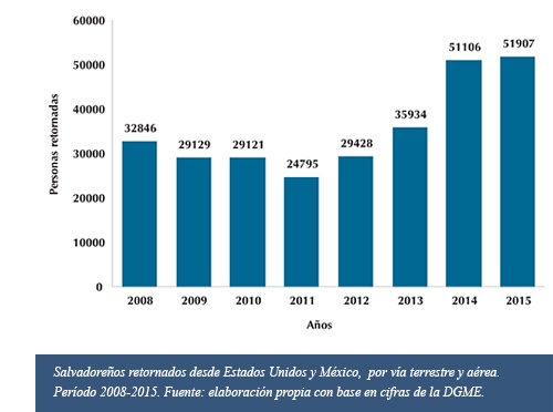 En 2015, las autoridades reportaron 51 mil 907 personas salvadoreñas deportadas desde Estados Unidos y México, lo que representa un incremento de 1.6 % respecto a 2014. Este es uno de los principales hallazgos de la monografía de El Salvador: “Una aproximación a las políticas de atención a los deportados en los países del Triángulo Norte de Centroamérica”, presentada por Fundaungo el 22 de febrero.